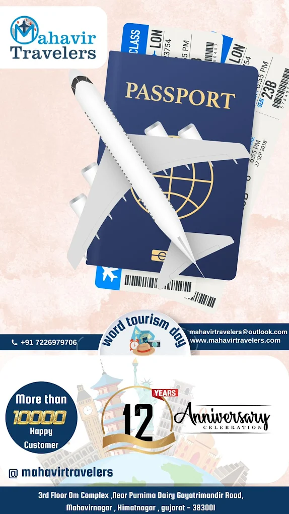 Welcome to Mahavir Travelers, your trusted partner for seamless and unforgettable travel experiences in Himatnagar, Gujarat, and beyond. Since 2011, we have been dedicated to helping travelers—whether families, solo adventurers, or business professionals—plan and enjoy domestic and international trips with ease, comfort, and reliability. Our vision is to make every journey memorable, stress-free, and tailored to the unique needs of each traveler.