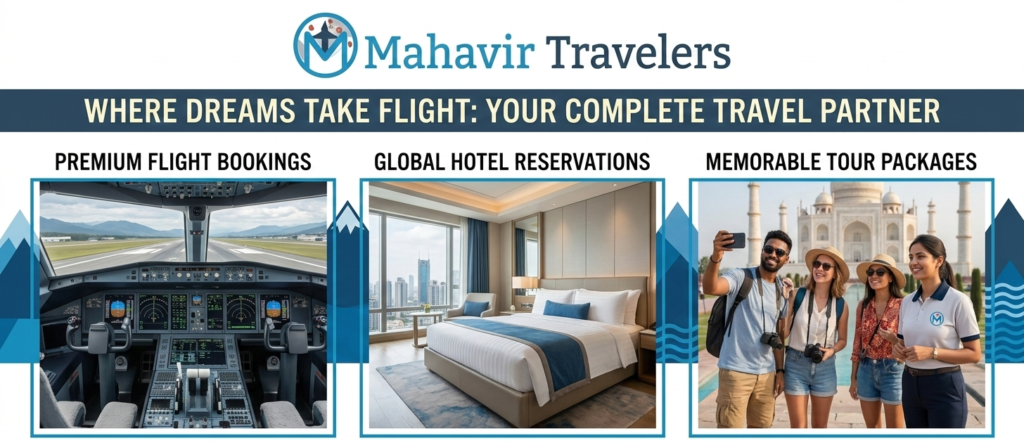At Mahavir Travelers, we specialize in flight bookings, hotel reservations, customized holiday packages, and complete travel assistance. From exploring the top destinations across India like Goa, Kerala, Rajasthan, and the scenic hills of Himachal Pradesh, to international hotspots such as Dubai, Singapore, and Australia, our curated packages are designed for comfort, convenience, and unforgettable experiences. Every itinerary is thoughtfully crafted, combining modern travel solutions with personalized guidance to ensure a smooth journey from start to finish.